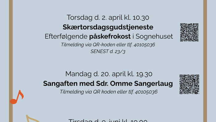 Tilmelding til arrangementer i foråret